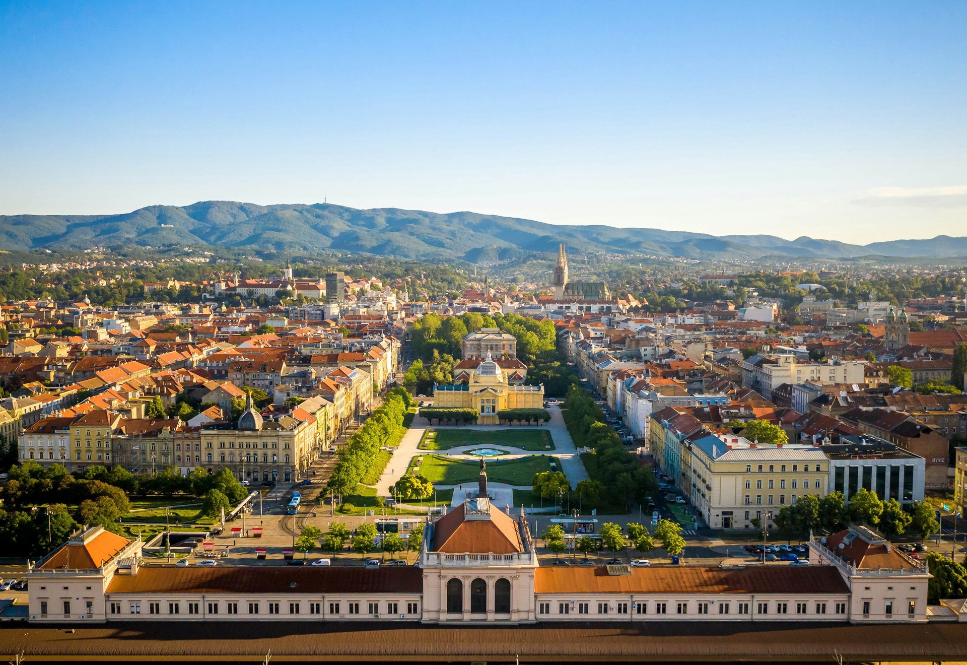 La ciudad está dividida en dos partes principales: la ciudad alta (Gornji Grad) y la ciudad baja (Donji Grad). Gornji Grad, con sus calles empedradas y edificios históricos, es el corazón antiguo de Zagreb, donde se encuentran la catedral de Zagreb y la famosa plaza de Ban Jelačić. En contraste, Donji Grad es más moderno, con amplias avenidas, parques y una arquitectura del siglo XIX.